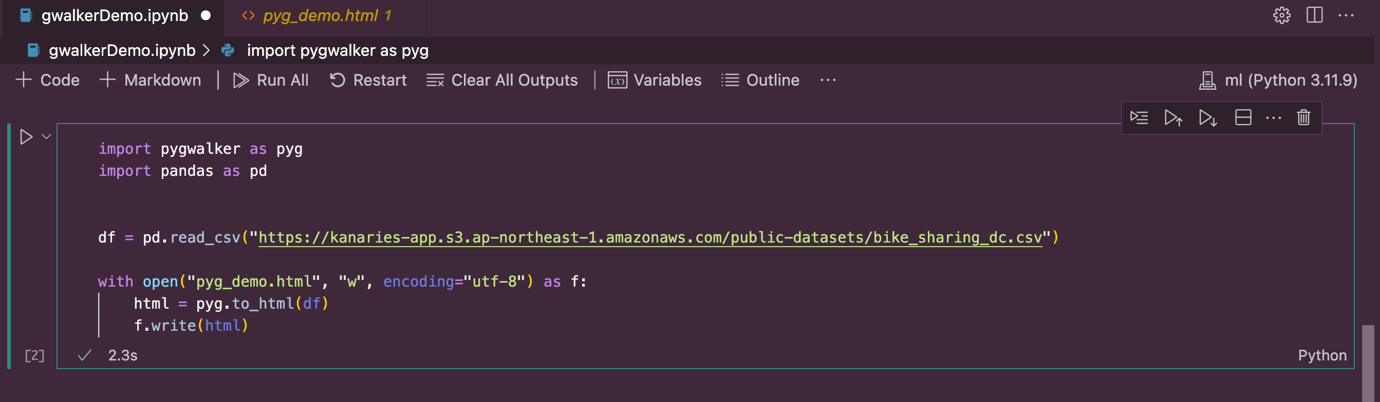在您的 Jupyter Notebook 中导入 pygwalker 和 pandas 来开始使用。