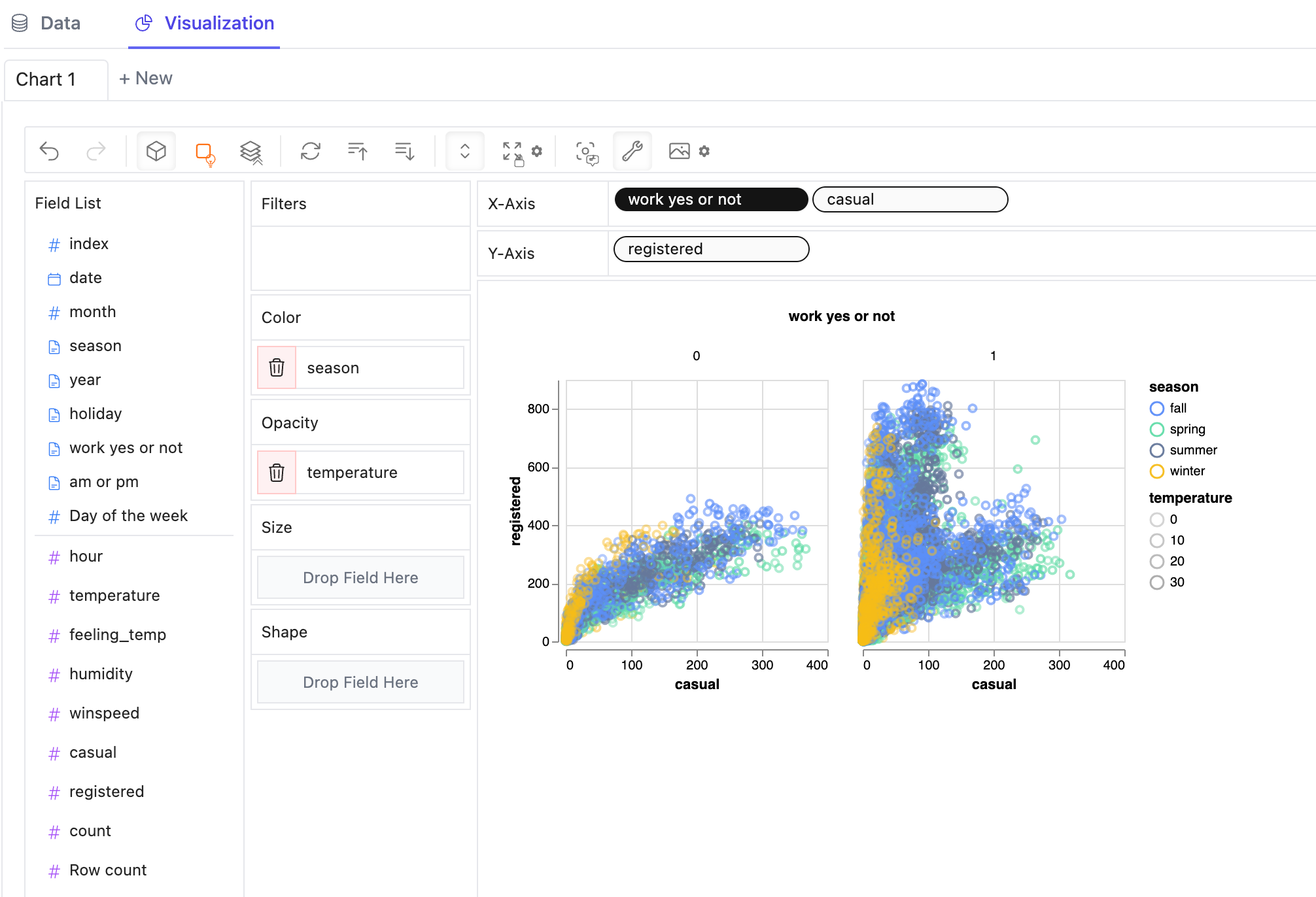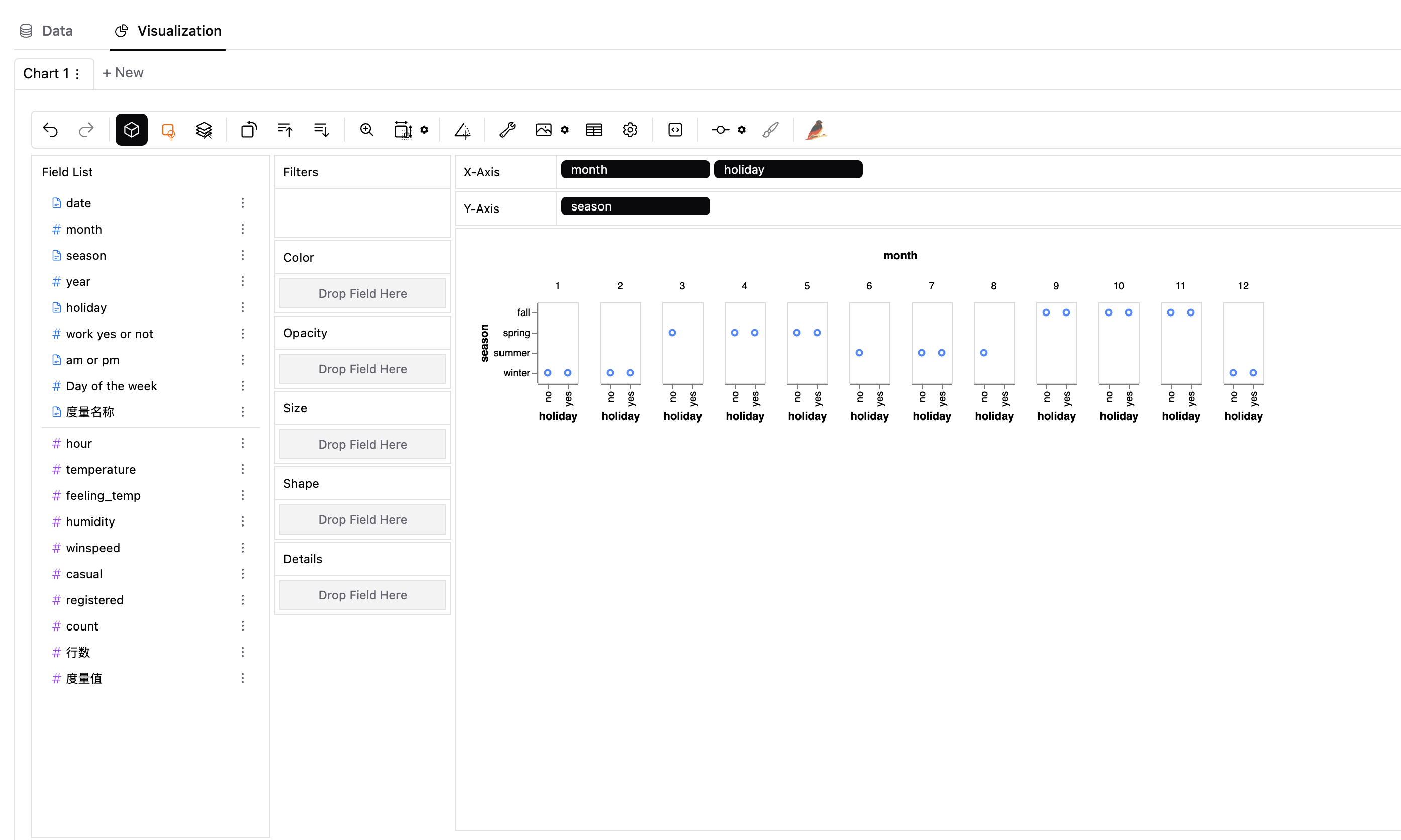 使用拖拉拽,直接操作 dataframe,创建可视化视图,完成数据分析:
