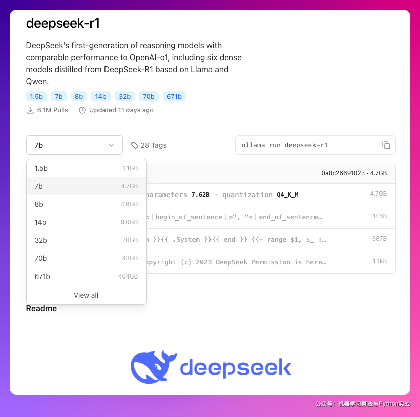 请视自己电脑/显卡性能情况选择对应参数,从 1.5b 到 671b