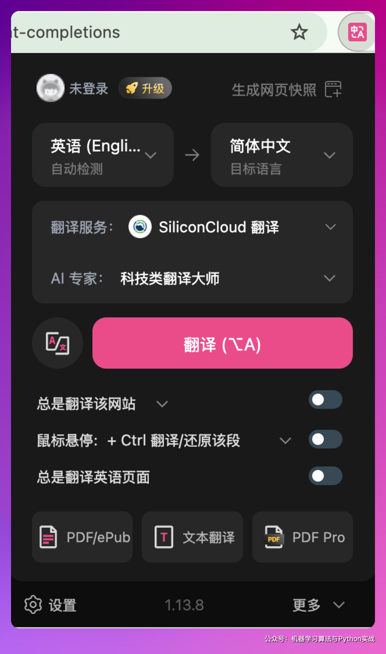 我之前我写过 PDF 全文翻译的文章,设置方法类似,感兴趣可以移步