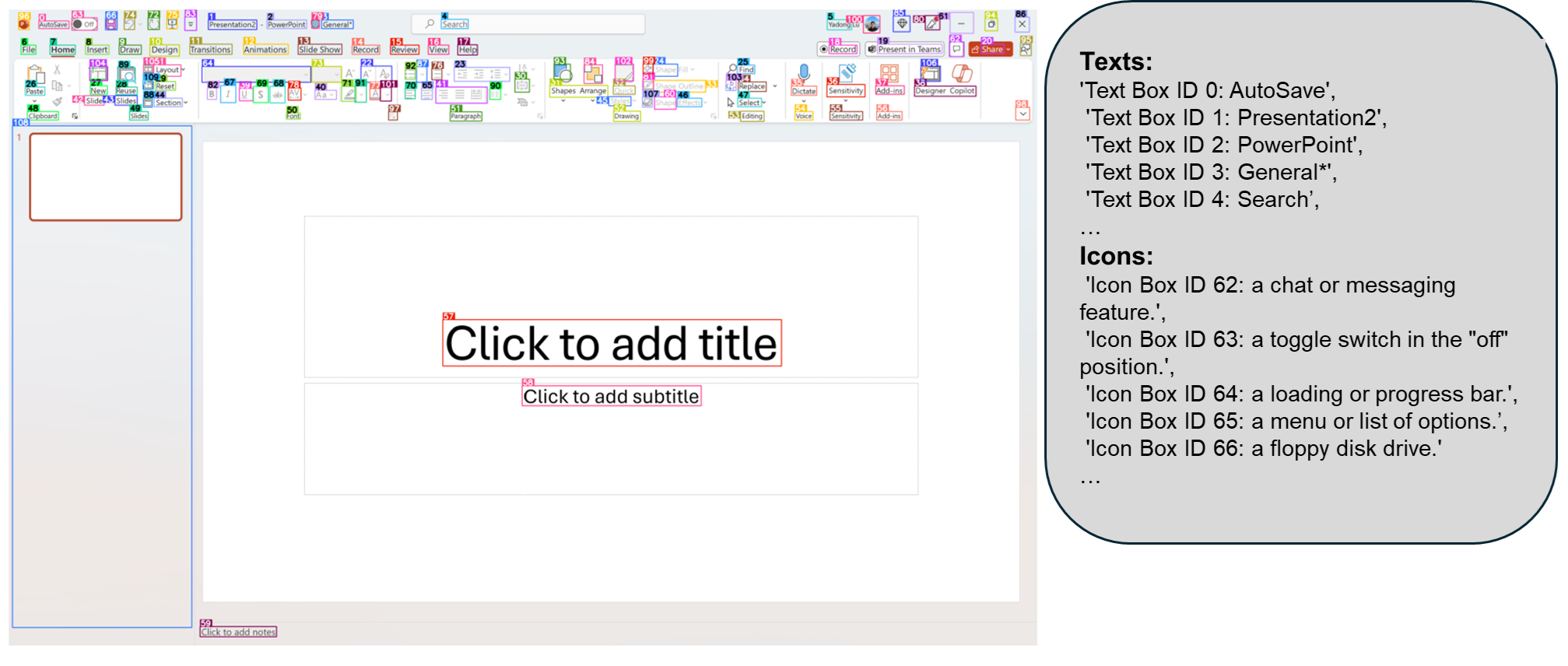 - 解析后的截图(包含边界框和数字 ID 标注)
