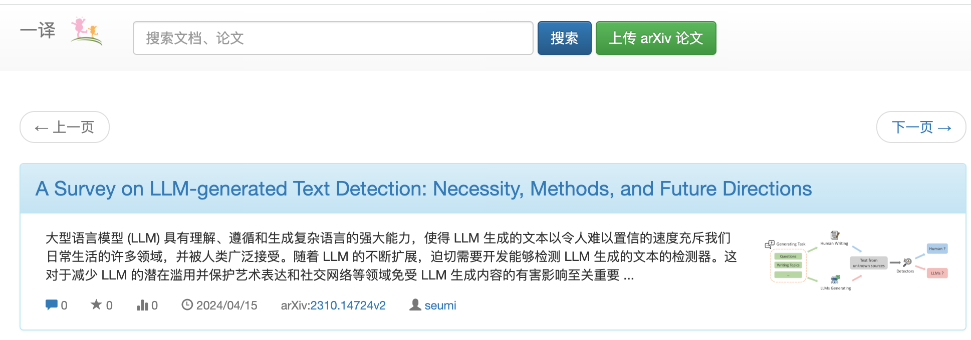 如果你想看的不在此列,可以上传 arXiv 论文,直接粘贴链接即可,翻译需要一些时间,稍等片刻即可。