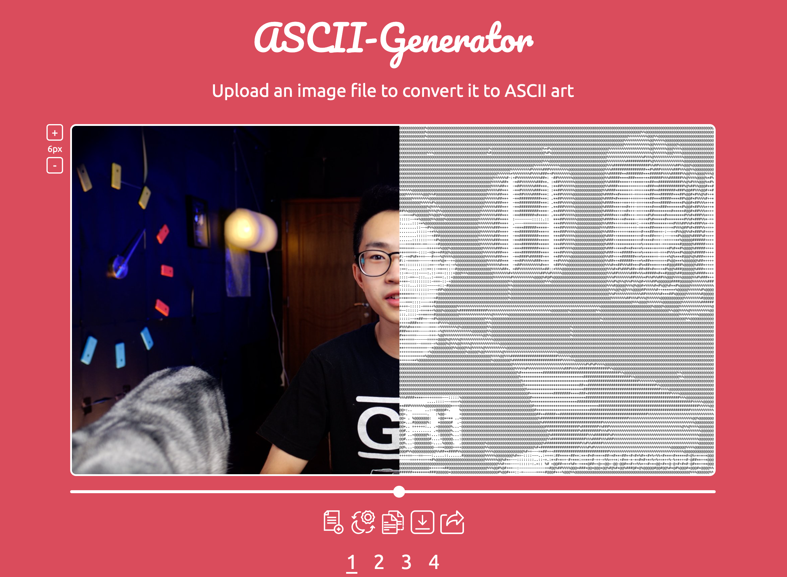 - 输入图像,生成以不同语言(.png、.jpg 等)的图像格式存储的 ASCII 艺术图。每种格式都有 2 个选项:黑色背景和白色字符,或反之亦然