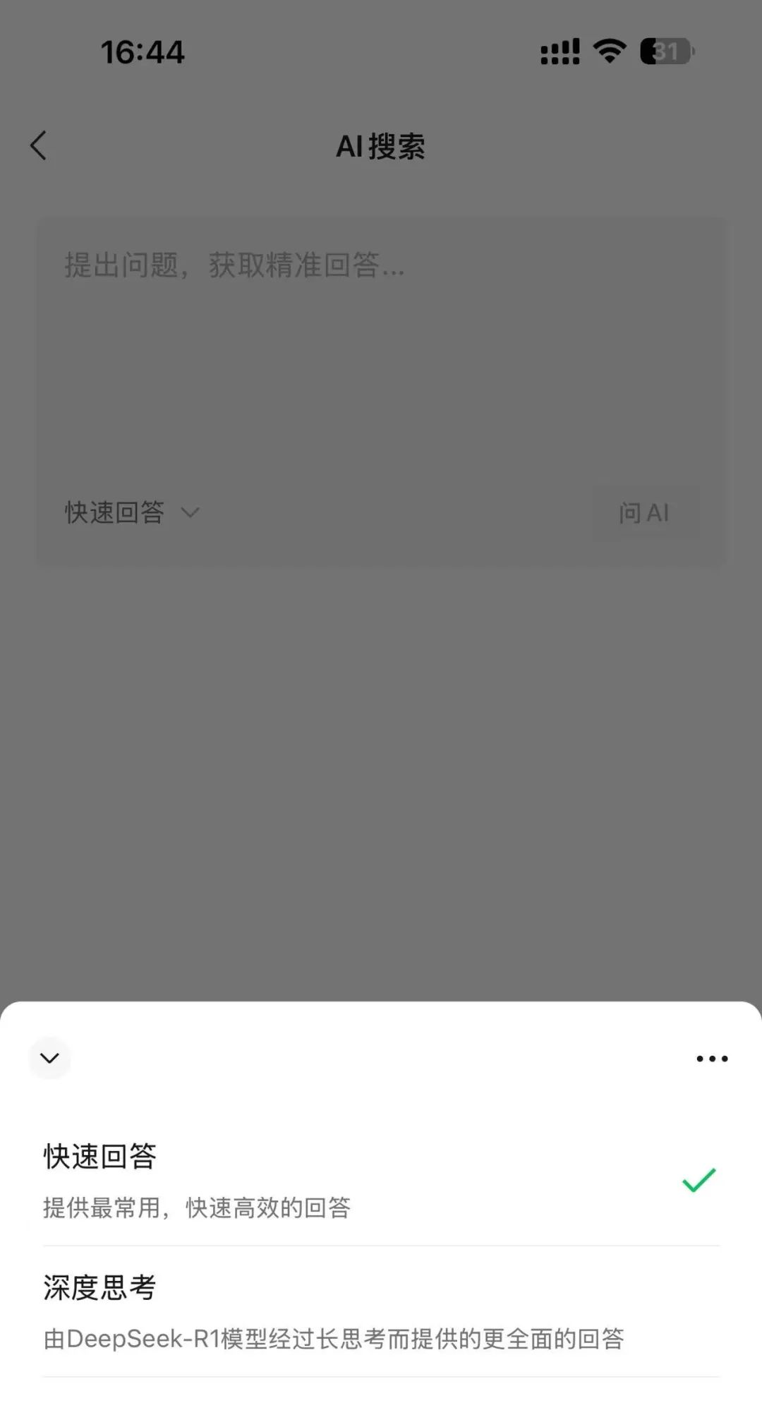2 是微信搜索接入了 DeepSeek 的 AI 搜索,不过正在灰度测试
